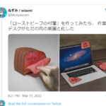 「ローストビーフの付箋」を作ってみたら、 作業デスクがただの肉の楽園と化した pic.twitter.com/qKYc9CiSg9&mda...
