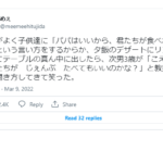 旦那がよく子供達に「パパはいいから、君たちが食べなさい」という言い方をするからか、夕飯のデザートにリンゴを向いてテーブルの真ん中に出したら...