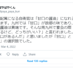 九州に配属になる自衛官は「甘口の醤油」になれる必要があります。九州では「甘口」が故郷の味であり、しょっぱい醤油は異端です。そんな南...