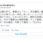 京浜東北線の中で。車掌さん「え~、次は蒲田~蒲田~と思ったら大森でした~失礼しました~」というアナウンスが流れてきた。じわじわときて、微妙...