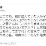 コンビニでね、前に並んでいた人がイライラで「オレのいつものタバコがわからないのか」って怒ってたの。店員さんは「これから覚えるので、今日だけは教えてもらえないですか?」と笑顔でいったあと「明日も待ってますね」の言葉で「おぉ」ってふつうにかえる客。店員さん!あなた確実にモテますよね
