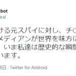 ピアノまで弾ける元スパイに対し、チ○コでピアノを弾いてた元コメディアンが世界を味方にして戦っている図を見ると、いま私達は歴史的な瞬間に立ち...