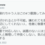 人間関係で疲れちゃう人はこの4つ意識してみて①全人類に好かれるとか不可能。嫌われても気にしない②自分を大切にしてくれない人、他者に敬意を払...