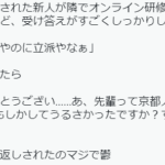 今年配属された新人が隣でオンライン研修をうけてるんやけど、受け答えがすごくしっかりしてたので「一年目やのに立派やなぁ」って褒めたら「ありが...