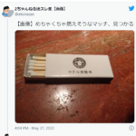 【画像】めちゃくちゃ燃えそうなマッチ、見つかる pic.twitter.com/ORl5xTkJs2— 2ちゃんねる迷スレ集【...