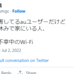 通信障害してるauユーザーだけど今日は休みで家にいる人、まさに不幸中のWi-Fi— ぽてと後輩 (@potato_ymgc) ...