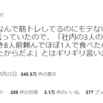 同期が「俺なんで筋トレしてるのにモテないんだろう…」って言っていたので、「社内の3人の飲み会でカツオのたたき8人前頼んでほぼ1人で食べたのに...