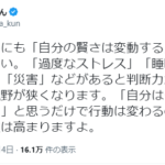 生き残るためにも「自分の賢さは変動する」と覚えておいてください。「過度なストレス」「睡眠不足」「トラブル」「災害」などがあると判断力が大きく...